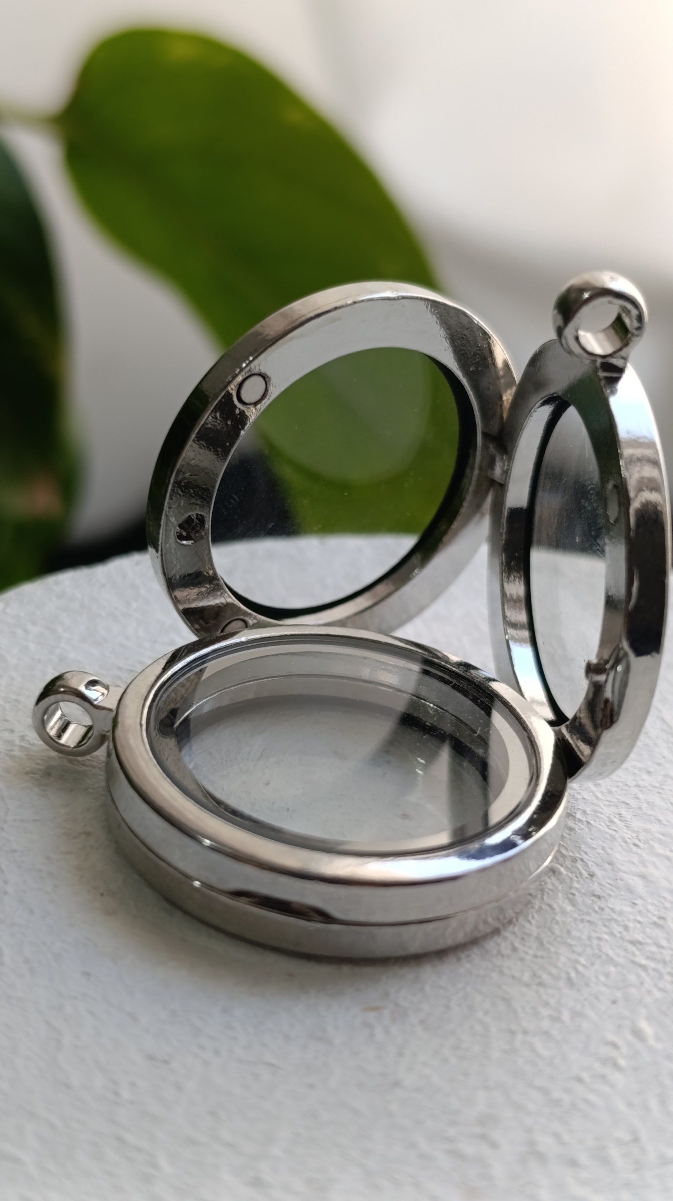 بدون زنجیر درش مگنتی هست و محکم بسته میشه میتونید داخلش هر یادگاری خواستید بذارید از جمله مو گلخشک یا هر اکسسوری کوچکی و هر زمان خواستید دوباره برش دارید مراقبتی چون از شیشه هست